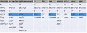 Above is a table that generally describes some of the more common telecom protocols and as you can see a fair number of them do rely on SCTP for transport.