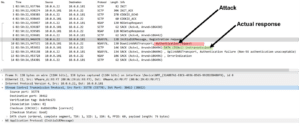 Attack Example 2b: Attacker packet where the AUTN data has been replaced with “banana splits!”